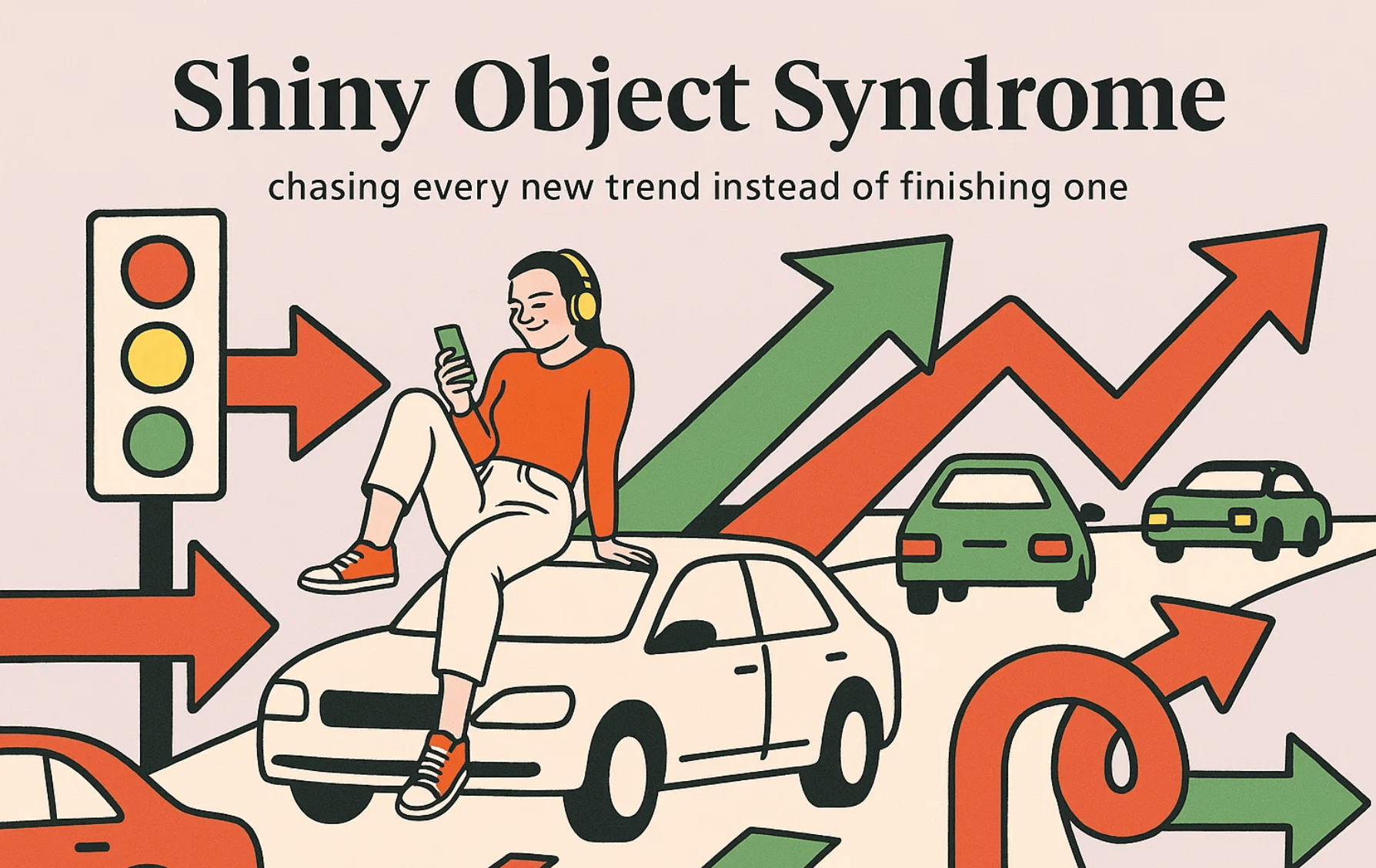 Shiny Object Syndrome is the itch to chase every new trend, tool, or tactic the moment it crosses your feed. It feels like progress because you are learning and gathering ideas, but it quietly destroys momentum.