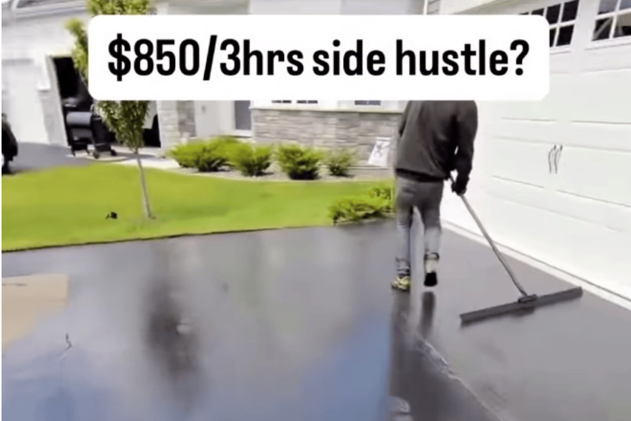 Cement Seal is one of those “why isn’t everyone doing this?” side hustles. You’re not building a SaaS app. You’re sealing driveways and small parking lots for homeowners and local businesses… and pulling in checks like $850 for about 3 hours of work.