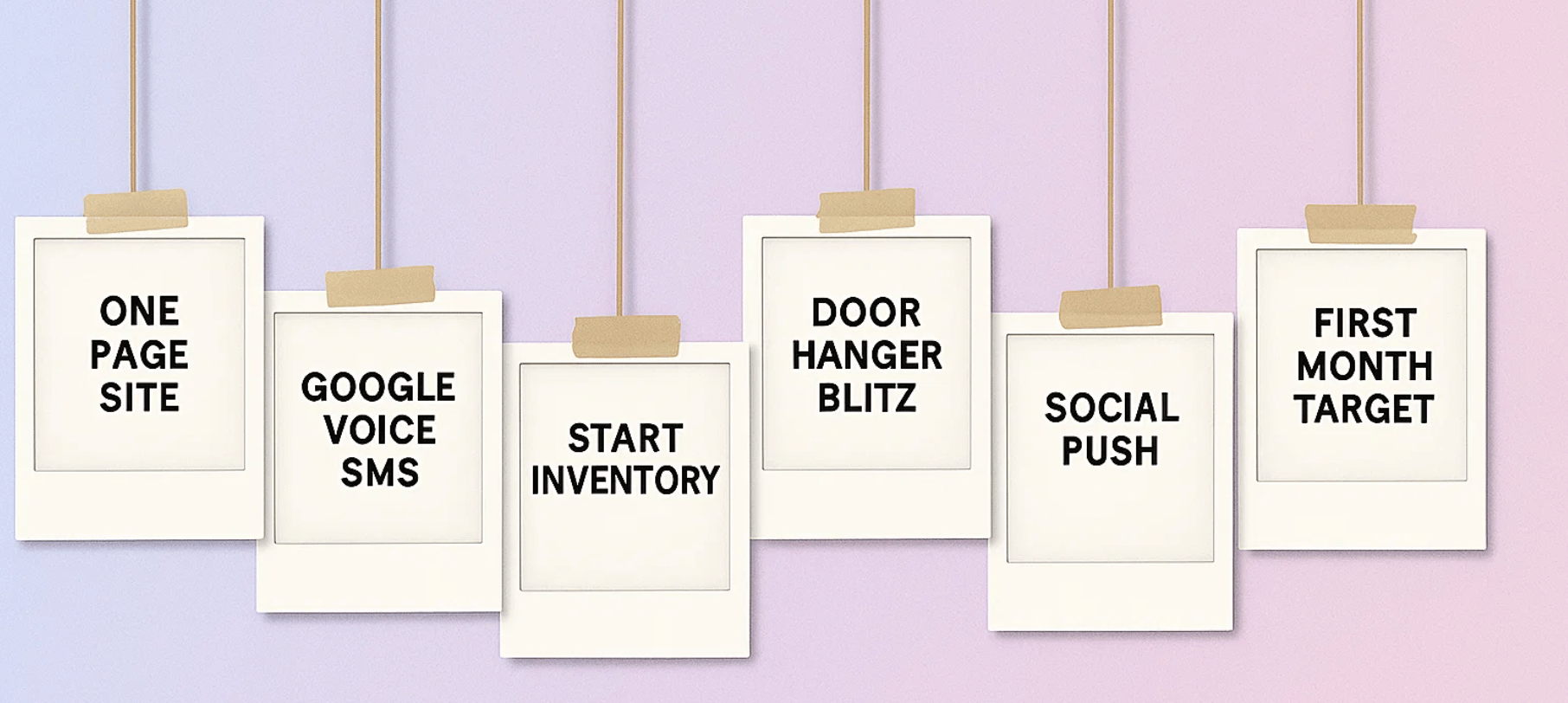 The Ramen-Level First Step: Set up a one-page local site with three plans and a book now button that opens a Calendly style scheduler. Use a free Google Voice number for SMS. Buy two refurbished sets and store them in a small garage or storage unit.