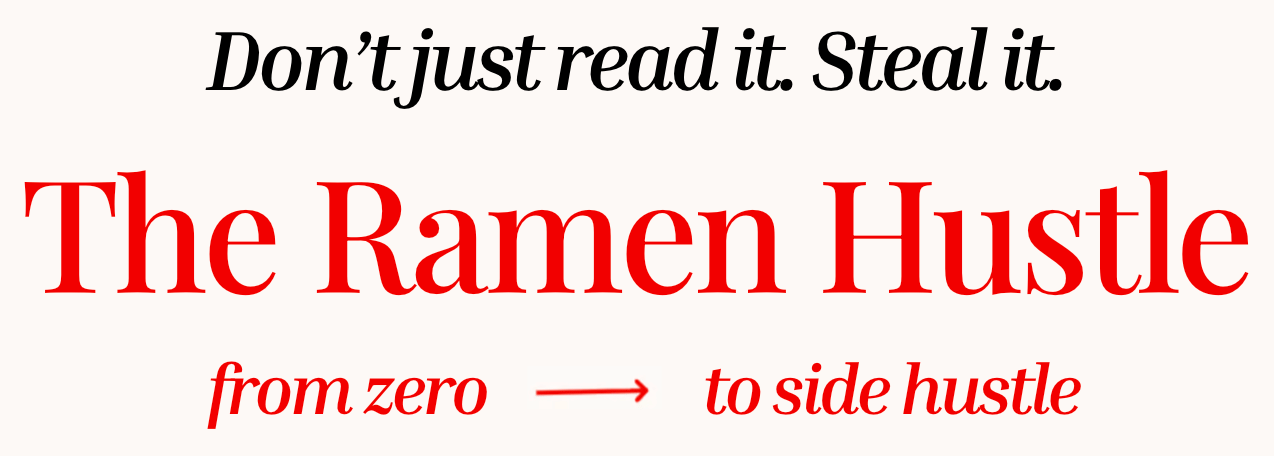 Welcome to The Ramen Hustle, your daily newsletter serving up hot, scrappy business ideas, helping you go from zero to side hustle.